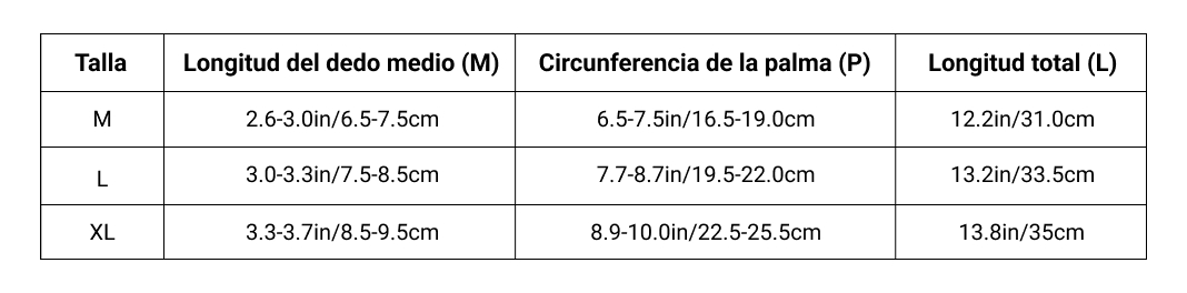 Guantes calefactados – Tabla de tallas – ES